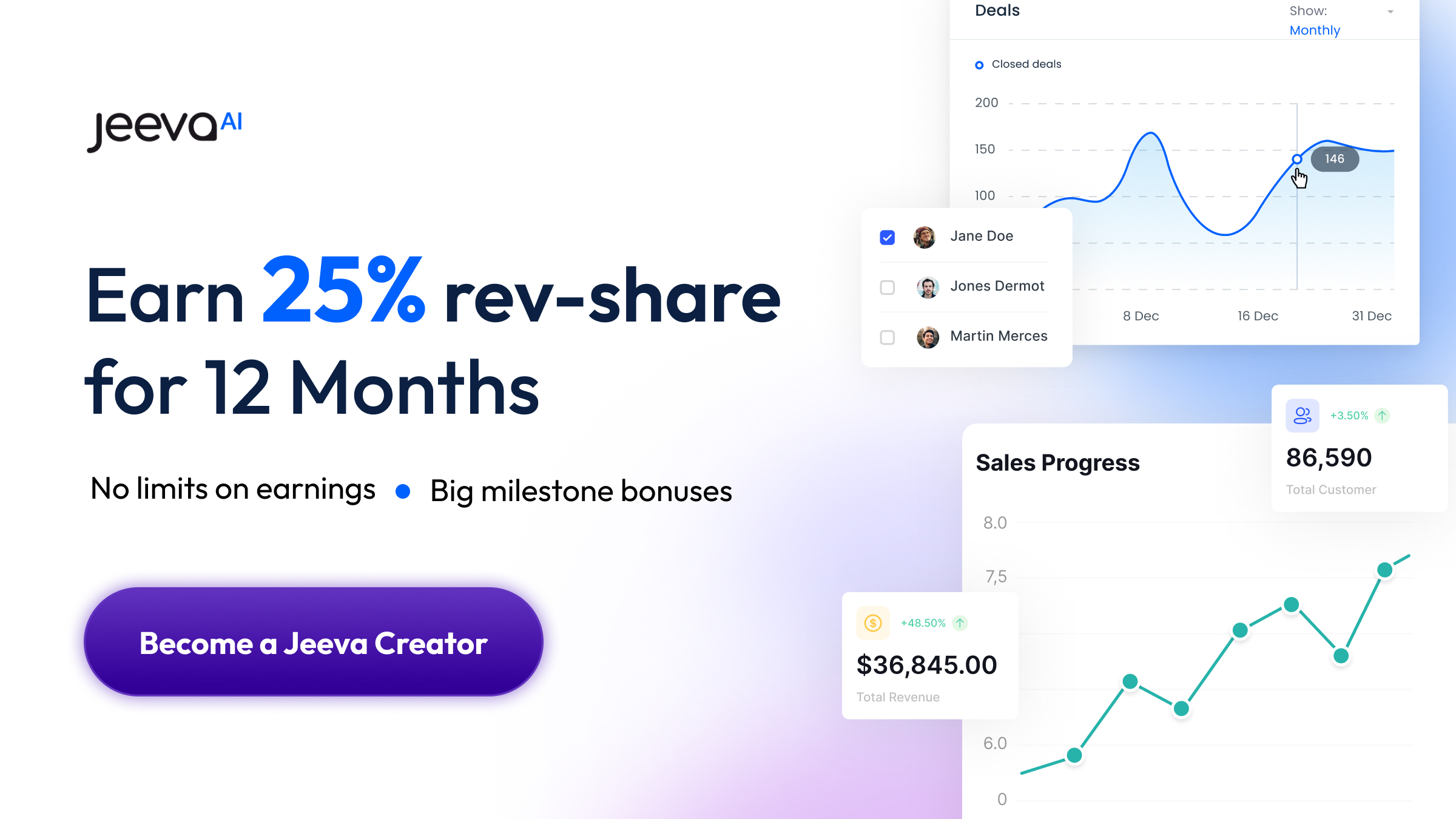 With Jeeva's all-in-one sales automation platform, your referrals get access to 1 billion+ leads, AI-powered outreach, and tools that save 7.6 hours per week while increasing replies by 120% and meetings by 300%.