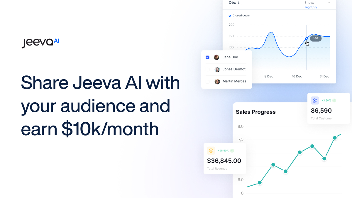 Jeeva AI is the #1 Product of the Week on Product Hunt and the complete sales automation solution that replaces multiple tools. Your audience will love how Jeeva automates the manual parts of sales so they can focus on what matters most - closing deals.